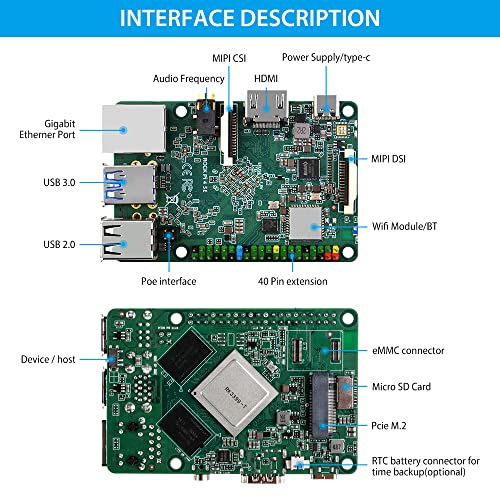 ROCK Pi 4 Modello SE 4 GB Starter Kit con ROCK Pi 4 Caso Acrilico PWM Ventola di Raffreddamento Dissipatori di Calore