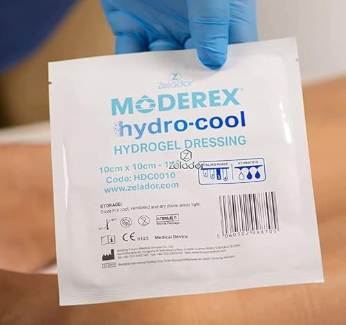 Moderex Hydrocool Hydrogel medicazione per ustioni, ferite necrotiche, riducendo il sollievo dal dolore (9 x 5,5 cm x 10)