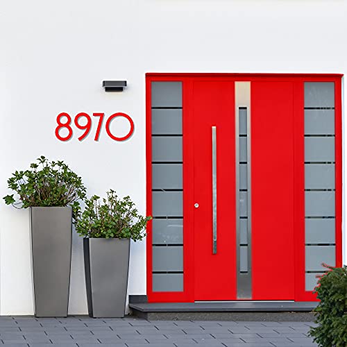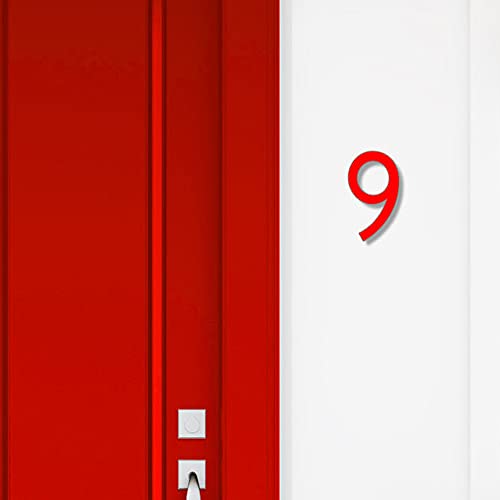 Modern Floating House Number 9, AVENIDA Door Numbers in 3 Sizes (15, 20, 25cm / 5.9, 7.8, 9.8in), incl. Fixings, Colour:Red, Size:15cm / 5.9'' / 150mm
