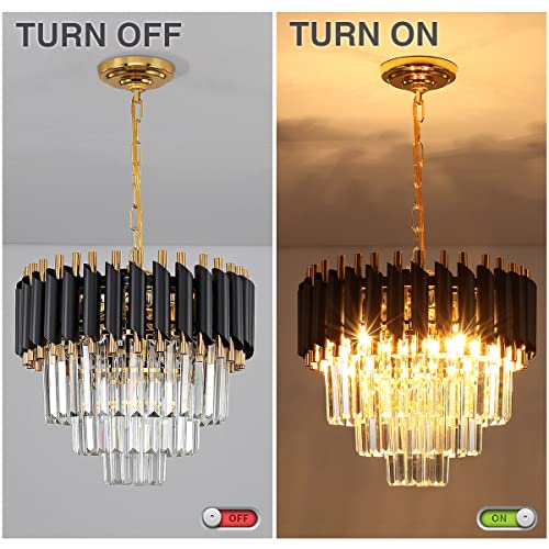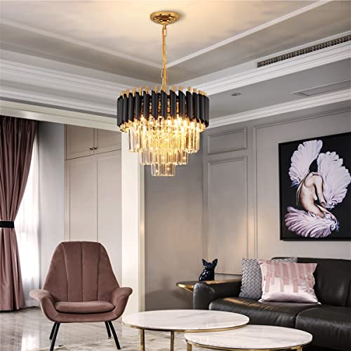 Modern Luxury Crystal Pendant Light Black Golden Crystal Chandelier Lights 3-Tier Raindrop Chandelier Light Fixture Flush Mount Ceiling Light for Dining Room Living Room Table Foyer,D40cm*H100cm...
