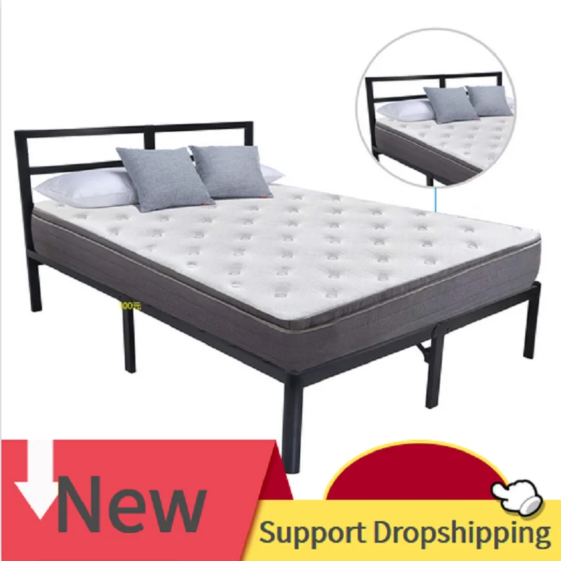Modern Full Size Metal Bed Frame Wood Slats Mattress Square Horizontal Bar Head Of Bed Iron Bed Twin Size Foundation Black