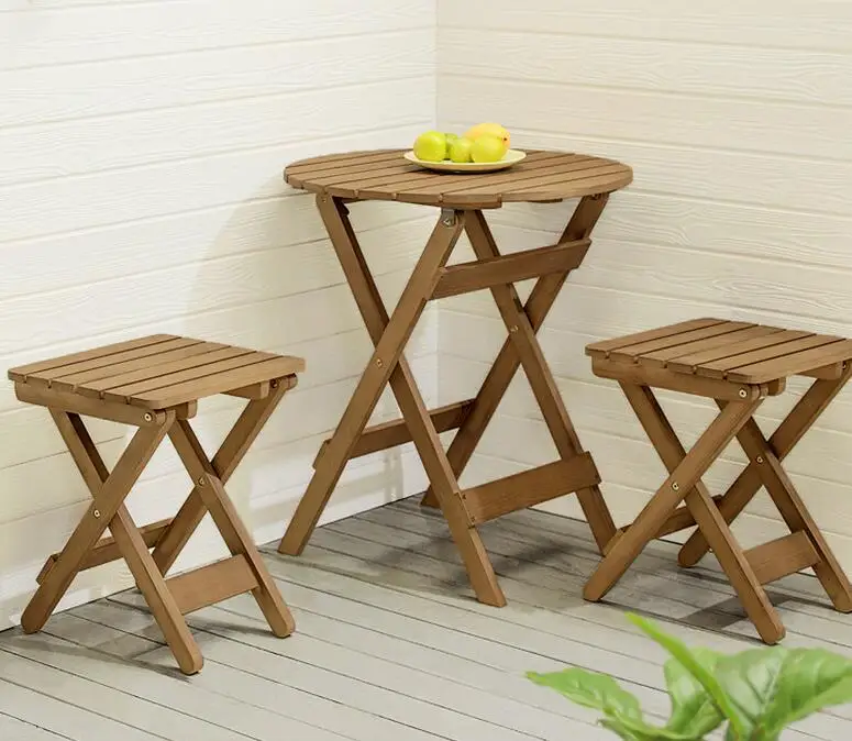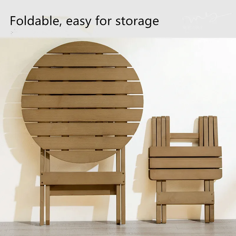 Modern Wood Patio Outside Garden Yard Folding Round Table and Stool Indoor Outdoor Furniture Foldable Wooden Garden Set