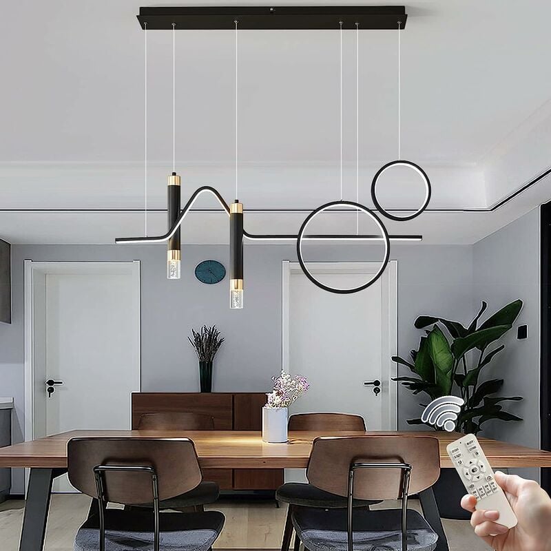 Funzione dimmerabile —— La nostra sorgente luminosa a LED di alta qualità è completamente dimmerabile in modo da poter controllare la luminosità con il telecomando. Puoi passare facilmente dalla luce calda (3000K) alla luce bianca (6000K) e controllare il livello di luminosità dal 10% al 100%. Il moderno lampadario a LED dispone inoltre di una pratica funzione memory. (Si prega di notare che questa luce non può essere utilizzata con un dimmer.) Informazioni sul prodotto —— Lunghezza: 94 cm. Larghezza: 12,5 cm. Cavo di sospensione regolabile: 100 cm. Puoi regolare la lampada a sospensione sospesa secondo i tuoi desideri. La nostra moderna lampada a sospensione a LED è alimentata da una tensione di 220 V ed eroga una potenza di 40 W e una luminosità di 3150 lumen. Con una durata media di 40.000 ore, questa luce offre prestazioni di lunga durata. Materiali di alta qualità —— Il nostro lampadario a LED lineare dimmerabile con una forma geometrica unica e creativa è composto da bolle e