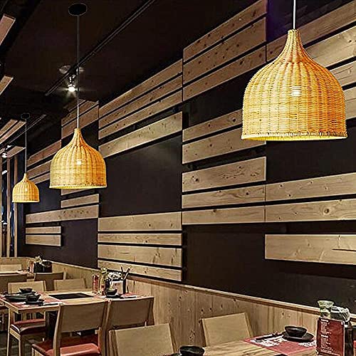 Modern Simplicity Rattan Chandelier Handmade Natural Bamboo Ceiling Pendant Light Wicker Woven Lampshade Hanging Lamp E27 Lighting Fixture for Bedroom Living Room Home (45 * 45cm)