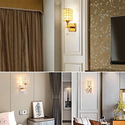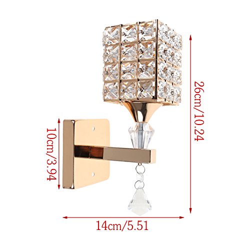 HJZ Moderna Lampada da parete in cristallo Lampada da parete Camera da letto Corridoio Luce da parete Supporto E14 Presa, lampadina non inclusa (Oro)