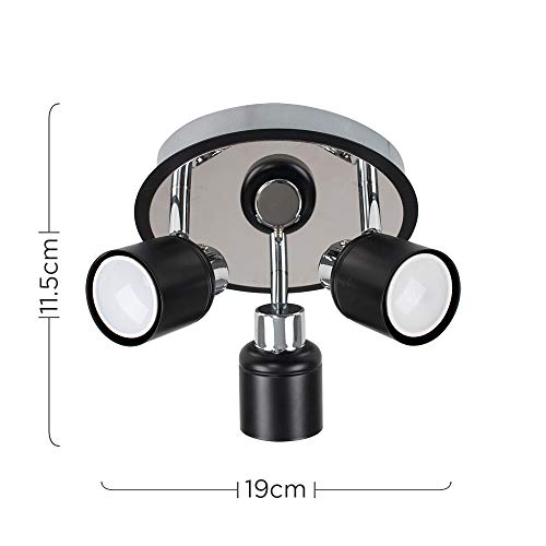 Moderna lampada da soffitto, grande e rotonda con 3 faretti regolabili, GU10, Crom & Schwarz 50.00 wattsW 230.00 voltsV