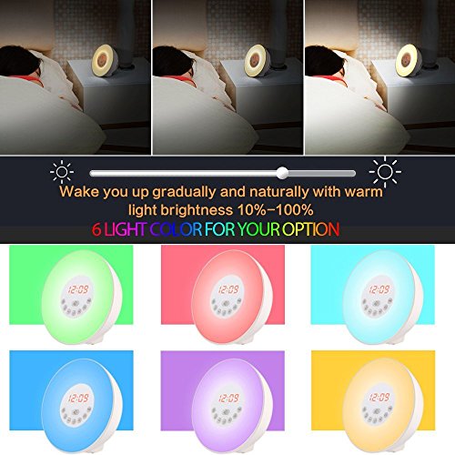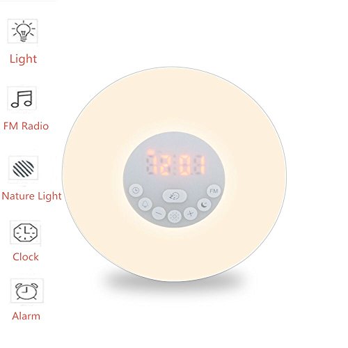 Moderna svegliare luce digitale Sveglia lampada touch con Simulazione Alba / Tramonto(6 Suono, Radio FM, Funzione Snooze) lampada da tavolo luce notturna Per la camera da letto