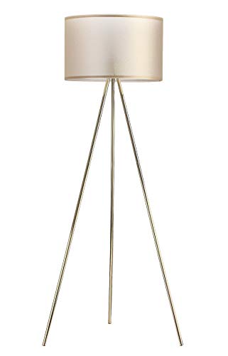 Modernluci lampada a stelo con treppiede, per il moderna soggiorno, la camera da letto, in stile scandinavo, con paralume in tessuto, diametro: 45 cm, altezza: 150 cm, E27, moderno ottone