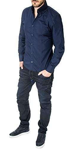 MODERNO - Camicia Classico Uomo Blu Scuro EU XL