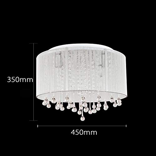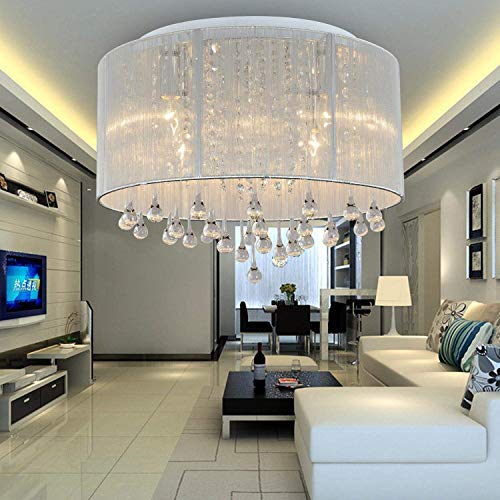 Moderno Elegante Il giro Soffitto rossore Leggero con bianca Garza Tessuto Paralume e Chiaro Cristallo Pendenti Gocce Lampadario per Soggiorno Camera da letto Lampada da soffitto Cromo Finire