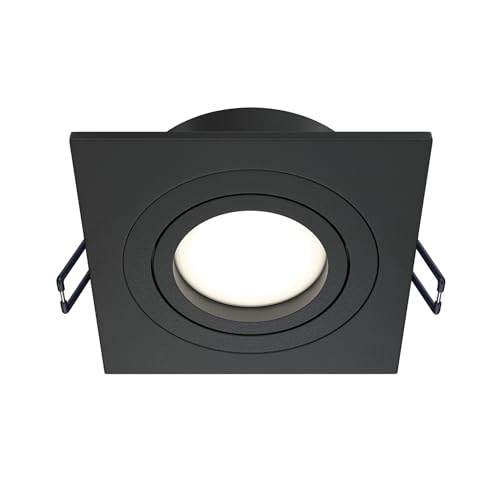 Moderno Faretto da incasso, Soffitto, In Alluminio Nero, Quadrato, Regolabile a 25 gradi, per 1 lampadina GU10 50W non incl