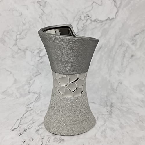 MATERIALI DI ALTA QUALITÀ: Questo vaso è realizzato in ceramica di colore argento. Il vaso da fiori è composto da elementi lucidi e opachi che conferiscono al vaso un fascino particolare. Il vaso ha un'altezza totale di 20 cm e una larghezza di 11 cm.