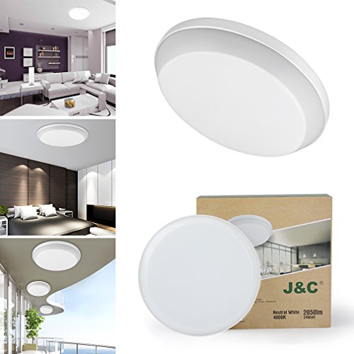J&C 24W Moderno Impermeabile LED Lampada a Soffitto Piazza Sottile Plafoniera a Filo Bianco Naturale Plafoniere a LED per Soggiorno Sala