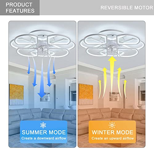 Moderno Lampadario Con Ventilatore Silenzioso LED Dimmerabile Plafoniera Con Ventilatore Motore Reversibile DC 6 Velocità Camera Da Letto Fiore Ventilatore Da Soffitto Con Luce E Telecomando-White||80