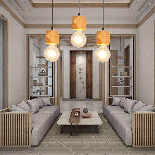 Moderno Legna Luce Pendente Lampada A Sospensione soffitto Contemporaneo E27 Altezza Regolabile Minimalismo Stile Country Ristorante Caffè Bar Bancone Soggiorno Sala Da Pranzo Negozio Club (D)
