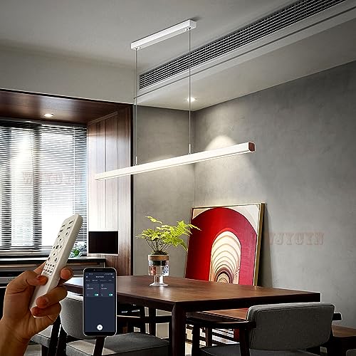 Moderno LED pendente Tavolo da pranzo Dimmerabile Materiale acrilico Lampada a sospensione Lampada da sala da pranzo Design lineare Lampadario con telecomando per ristoranti Ufficio L100cm 40W Bianco