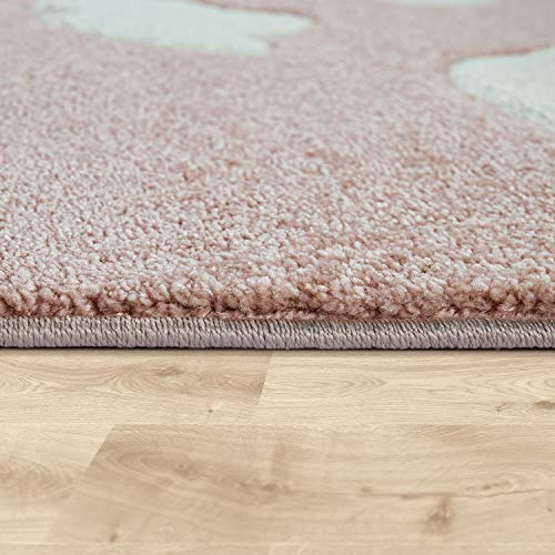 Paco Home Moderno Tappeto per la cameretta dei Bambini dal Design con Nuvole, Dimensione:200x290 cm, Colore:Pink