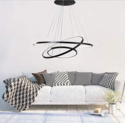 ZXM Moderno Tavolo da Pranzo Lampadario A LED LED 3-Ring LED Dimmerabile Telecomando Lampada A Sospensione Soggiorno Plafoniera Camera da Letto Altezza Comprensibile,Nero,80+60+40CM(113W)