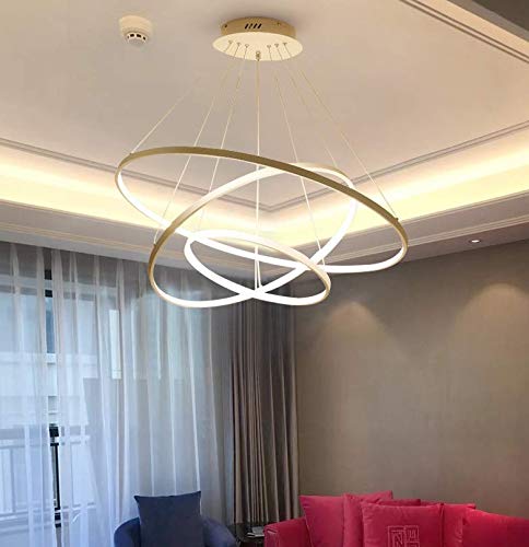 ZXM Moderno Tavolo Da Pranzo Lampadario A LED LED 3-Ring LED Dimmerabile Telecomando Lampada A Sospensione Soggiorno Plafoniera Camera Da Letto Altezza Comprensibile,D'oro,60+40+20CM(75W)
