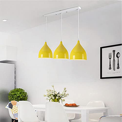 Moderno Tavolo da pranzo Lampade a Sospensione Regolabile altezza Cupola Sala da Pranzo Metallo Luce Pendente Nordico, Giallo Droplight,E27×3, Ristoranti soggiorno Camera da letto Caffè