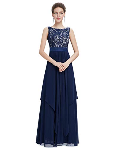 MODETREND Donna Elegante Vestiti da Matrimonio Pizzo Abito in Chiffon Lunghi Vestito Formale Banchetto Sera (XXXL, Blu)