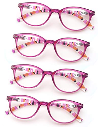 MODFANS Confezione da 4 occhiali da lettura per donna, Lente Trasparente Visione Chiara - Montatura Leggera Moda Comodo Inclusa Tasca per Gli Occhiali