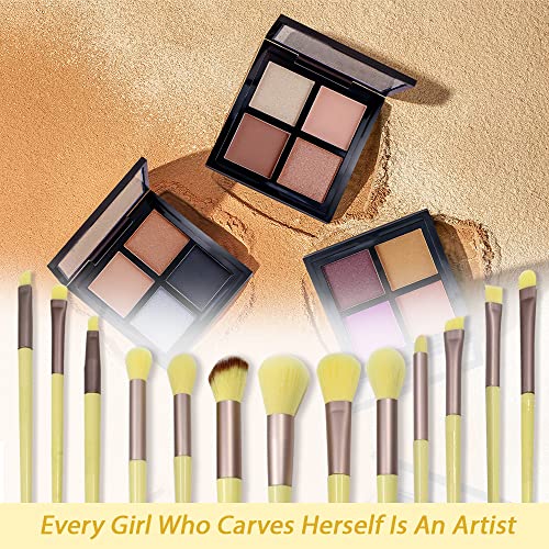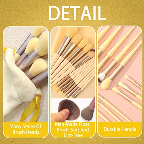 Modixun Set di pennelli da trucco con custodia, 13 pennelli da trucco per fondotinta, cipria, contouring, fard, correttore, ombretto, sopracciglia, colore: giallo