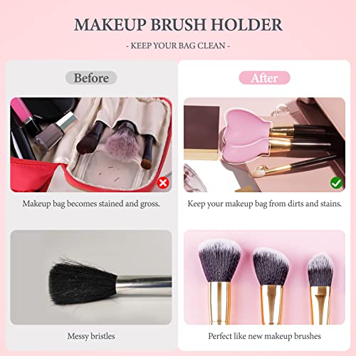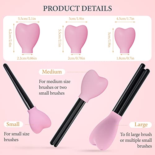 Modloan 3PCS Copertura per Pennelli per Trucco in Silicone Copertura Protettiva a Forma di Cuore Riutilizzabile Resistente alla Polvere e alla Deformazione, Adatta per Viaggi e Gite(Rosa)