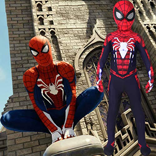 MODRYER Bambini Costume Spiderman Peter Parker Cosplay Tuta della Ragazza Ragazzo Vestito Operato Stretta Vestito Halloween Carnival Party,Blue Ps4/narrow Side Glasses-Kids/L 135~145cm