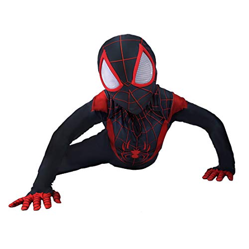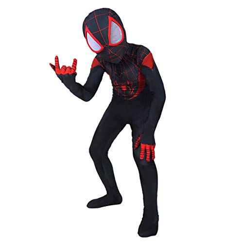 MODRYER Bambini Costume Spiderman Peter Parker Cosplay Tuta della Ragazza Ragazzo Vestito Operato Stretta Vestito Halloween Carnival Party,Miles Morales-Kids/S 115~125cm