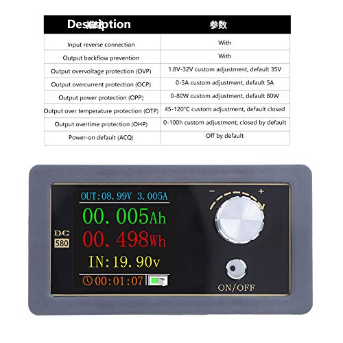 【Prestazioni】 Il monitor LCD colorato da 1,44 pollici può visualizzare contemporaneamente la tensione preimpostata, la tensione di ingresso, la tensione di uscita, la corrente preimpostata, la corrente di uscita e la potenza di uscita. Nell'area di promemoria dello stato dell'uscita, è possibile monitorare che la chiave sia bloccata o meno, l'uscita è normale o meno, lo stato di tensione costante e corrente costante, il prompt del set di dati corrente e l'uscita si apre o meno
