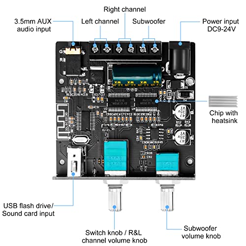 [HIFI & Stereo] Scheda amplificatore a 2.1 canali di alta qualità 15 W+15 W + 30 W. Con AUX, Bluetooth, chiavetta USB, scheda audio USB, più metodi di ingresso audio. Con altoparlanti attivi e passivi due metodi di output. Puoi goderti la tua musica in diversi modi