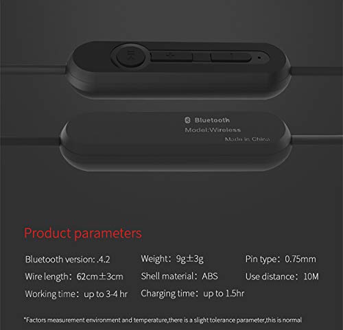 KZ - Modulo Bluetooth aptX 4.2 Wireless Upgrade Cavo staccabile 2 Pin plug-in per cuffie in-ear QKZ e KZ (nero (BPIN))