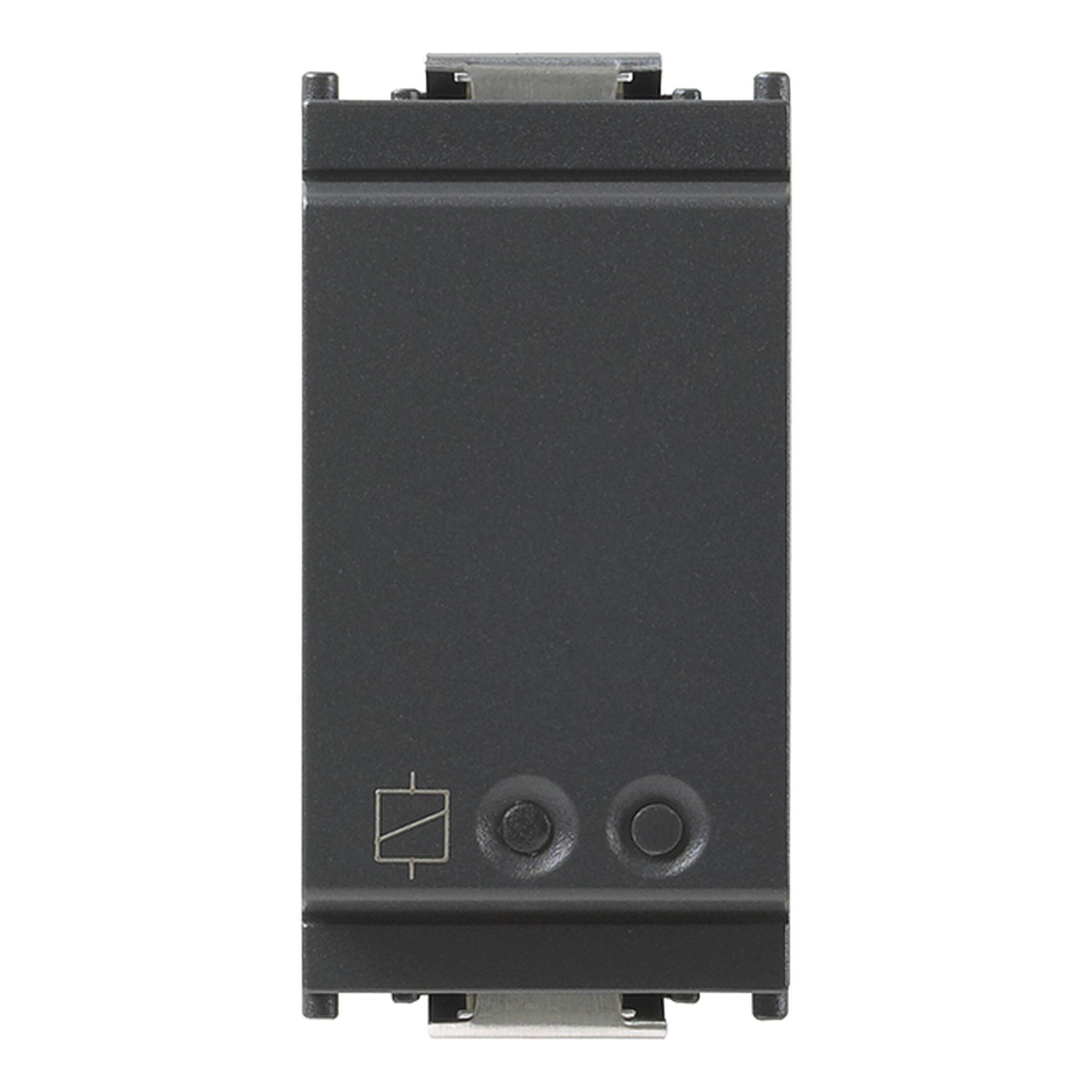 Apparecchio di comando elettronico VIEW Wireless con uscita a relè NO 16 A 100-240 V~ 50/60 Hz. Controllo locale con pulsante o da remoto, doppia tecnologia IoT su standard Bluetooth 5.0 per realizzazione sistema mesh VIEW Wireless e su standard Zigbee 3.0, funzione di misurazione della potenza istantanea e dell'energia consumata e soglia di stacco carico, individuazione al buio a LED RGB con regolazione di intensità, alimentazione 100-240 V 50/60 Hz. risparmio energetico
