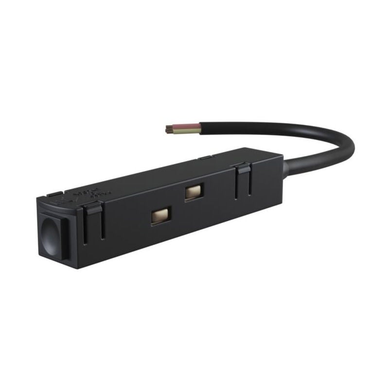 Collezione Accessories For Tracks S35 CONNETTITI CON L'ESSENZIALE Il connettore con cavo per binario in plastica nera è un componente essenziale del sistema di binari progettato per il montaggio a incasso. Realizzato in materiale plastico nero di alta qualità, questo connettore presenta una grande resistenza e durata nel tempo, garantendo una perfetta connessione tra i segmenti del binario stesso. Questo tipo di connettore è dotato di un cavo elettrico che consente di collegare i dispositivi di illuminazione al sistema di binari. Grazie alla sua forma ergonomicamente studiata, esso permette di unire i segmenti del binario in modo rapido e facile, garantendo al tempo stesso una perfetta aderenza tra di essi.