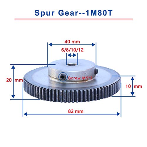 1 pc 1 modulo 80 denti Ingranaggio cilindrico di alesaggio 6/8/10/12mm Gear Wheel acciaio al carbonio motoriduttore