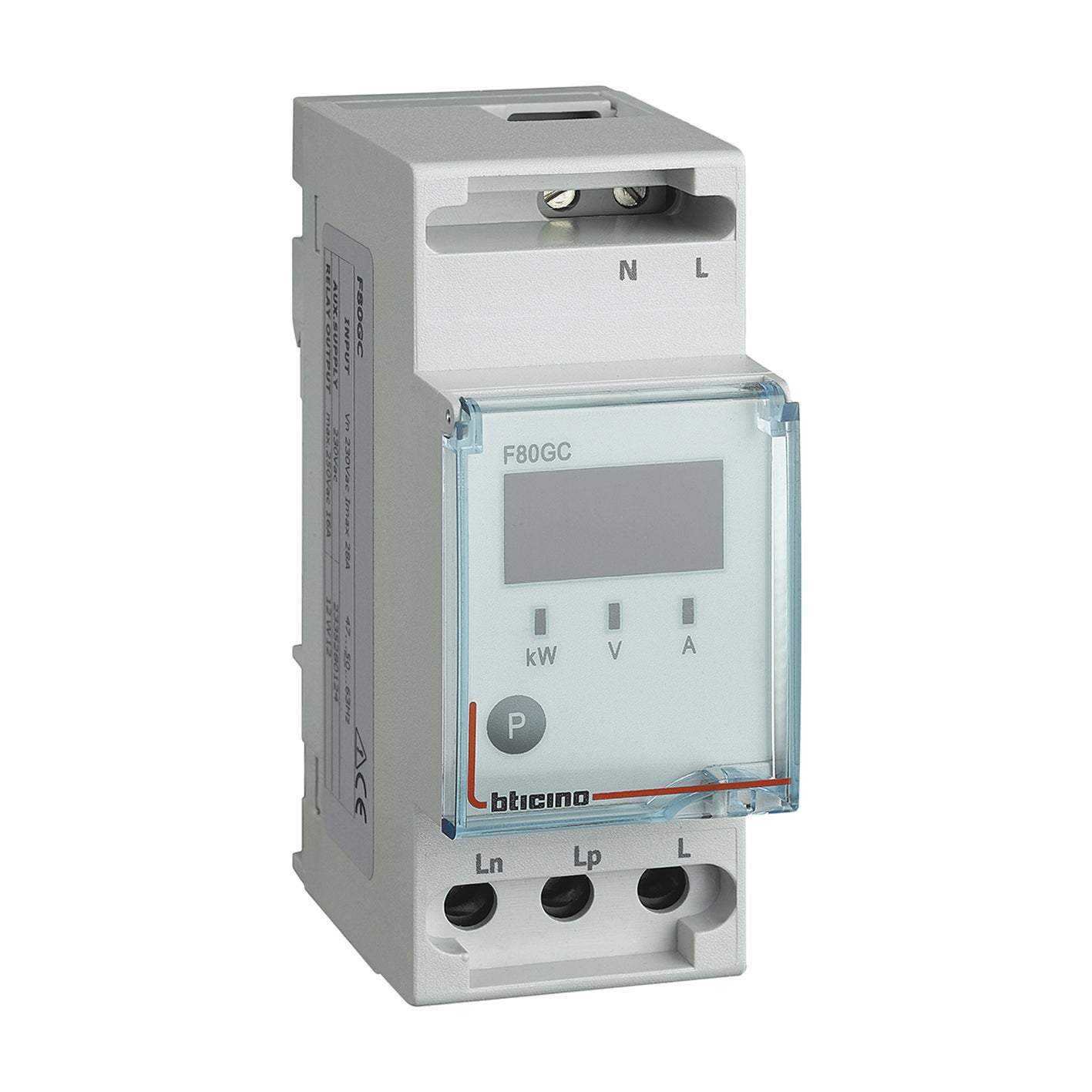 2 moduli, IP20. Consente di controllare la potenza impegnata e di attivare, in caso di sovraccarico, una segnalazione acustica interna (buzzer) e, se impostato, il distacco automatico dei carichi non prioritari