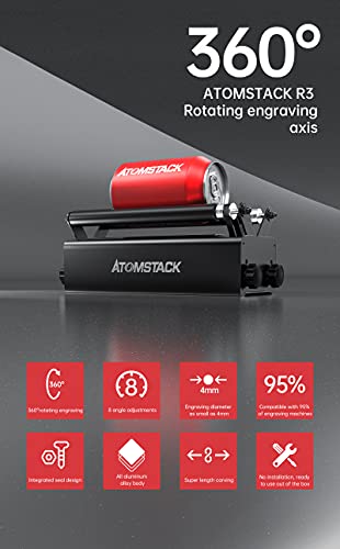 ★ Ampia compatibilità: il rullo rotante R3 è applicabile al 95% delle macchine per incisione, funziona con tutti gli incisori laser Aatomsstack e altri marchi come Compatibile con Orturr-Nejee-Twotress. Modelli applicabili: macchina per incidere di cornici per foto, macchina per incidere portatile.