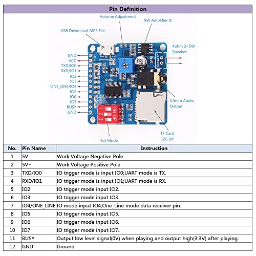 Modulo Riproducibile Vocale DY-SV5W,Moduli Riproduzione Vocale UART I/O Trigger Amplificatore classe D 5W SD/TF Card Play Serial Port Control Playback Compatibile Arduino