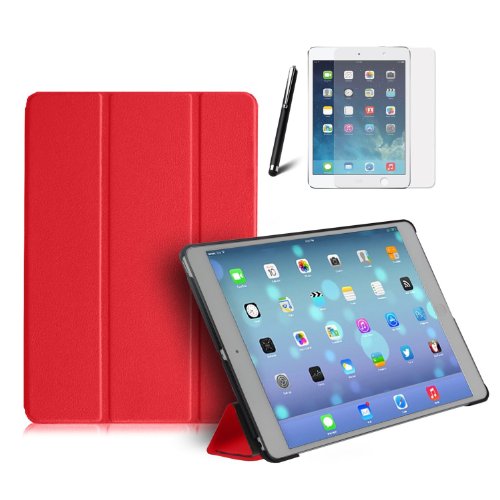 Mofred - Custodia in pelle con supporto, pellicola protettiva e magnete integrato per Apple iPad 2/3/iPad con display Retina, disponibile in diversi colori - rot Ipad Air