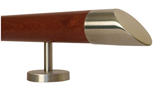 Mogano ringhiera corrimano scale manico in legno supporto dritto in acciaio inox, lunghezza 30-500 cm da un unico pezzo/ad esempio lunghezza 390 cm con 5 supporti dritti - estremità = estremità