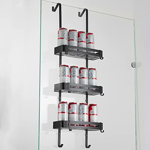 MOGFCT Mensola Doccia da Appendere Organizer da doccia da bagno sopra la porta portaoggetti da appendere in alluminio a prova di ruggine, ripiano da bagno con gancio antiruggine (nero)