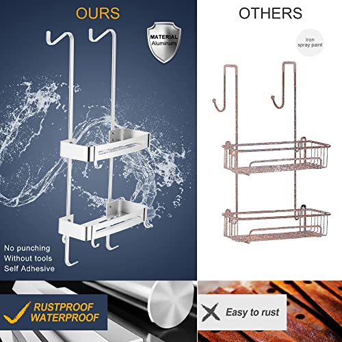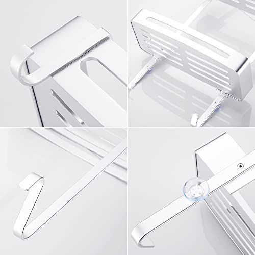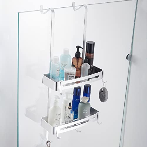 MOGFCT Mensola Doccia da Appendere Organizer da doccia da bagno sopra la porta portaoggetti da appendere in alluminio a prova di ruggine, ripiano da bagno con gancio antiruggine(argento)