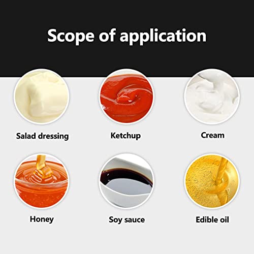 Versatile: adatto per conservare tutte le salse/liquidi. Salse, olio d'oliva, ketchup, senape, maionese, salsa piccante, salsa di soia, sciroppo d'acero, condimenti per insalata, ecc. Molto adatto per grigliate, campeggio, ecc.