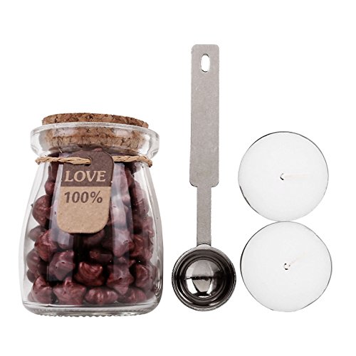 1 timbro vintage da ceralacca e 120 perline a forma di stella in ceralacca con 1 cucchiaio per sciogliere la ceralacca e 2 candele.