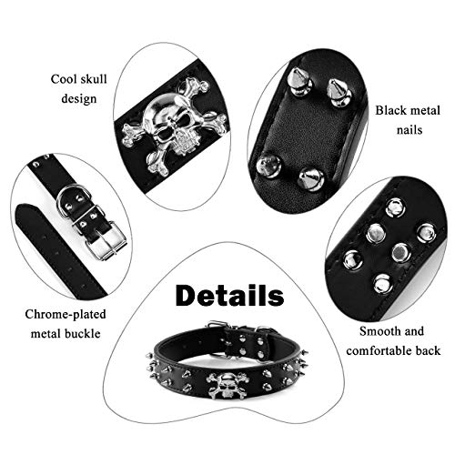 Mogokoyo Collare per Cane Cani Regolabile con Borchie di Tutte Le Taglie Pelle PU allo Stile di Punk Gotico Teschio Nero per Festa di Halloween