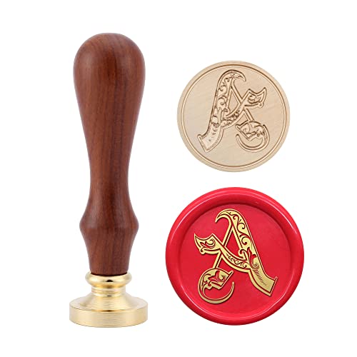 Mogokoyo 1 gotico Sigillo Alfabeto A - Z Gli Iniziali Timbro in Ottone e Legno per Lettera Busta Documenti Privati Vintage,A