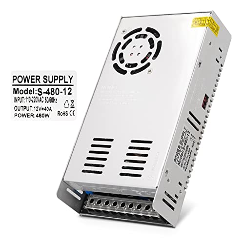 MOGOULUA Alimentatore 12V 480W 40A Universale Alimentatore Regolato da 220V a 12V Alimentatore LED Driver Alimentatore AC Convertitore DC Adattatore per CCTV Radio Monitor Computer