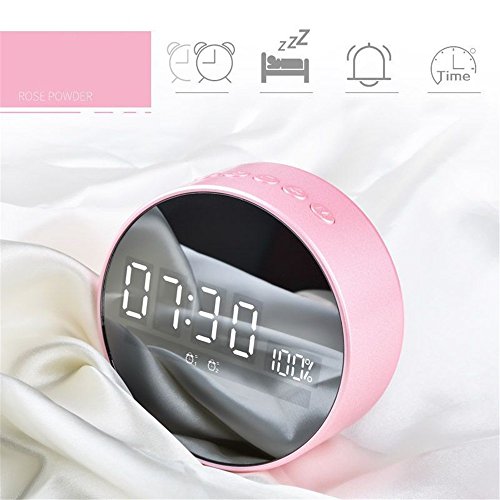 MOGUU Bluetooth Stereo Portatile, 4.2 Oratori Intervenuti, Bass, Porto, Microfono Incorporato Sono Adatti Per I Tablet O Smartphone Compatibili Dispositivi Bluetooth, Specchio Display Digitale Sveglia.,Rosa Altoparlanti