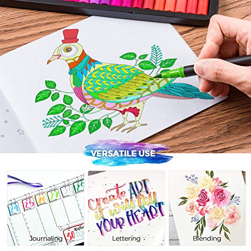 Mogyann - Pennarelli per colorare, per adulti, 100 colori, doppia punta, con punta fine e punta a pennello, per colorare, calligrafia e disegno